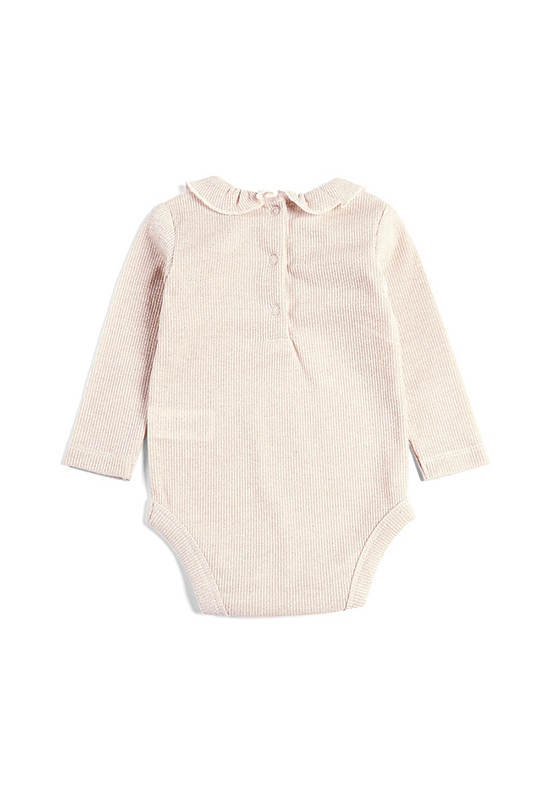 Add a little bit of sparkle to your little one’s special outfit with this bodysuit. Perfect for parties, it’s been finished with a shiny metallic thread and lovely frills on the collar. And thanks to the poppers on the crotch and on the back, getting dressed and changing baby is made really easy.