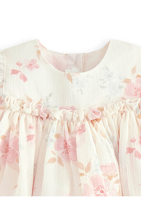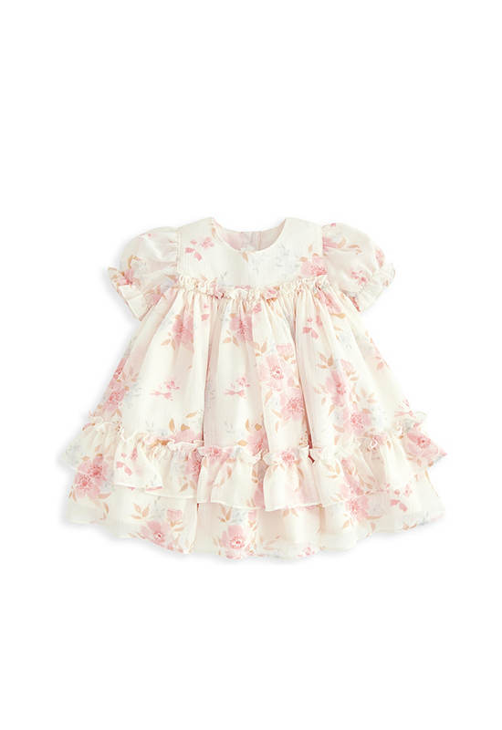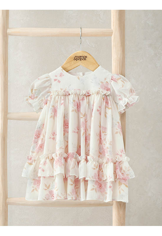 Girls chiffon occasion wear dress with all-over vintage floral print.