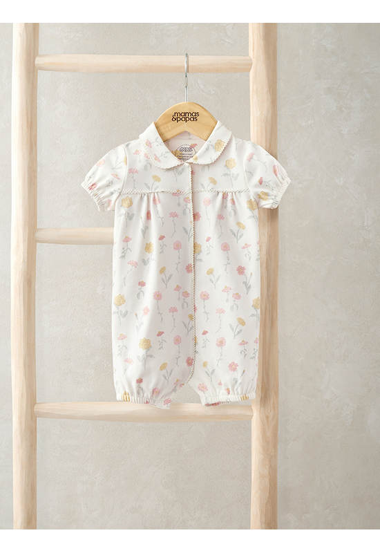 This cute floral PJ romper is what sweet dreams are made of, designed to be both cute and comfy.