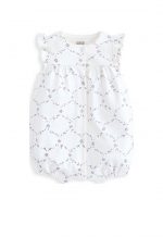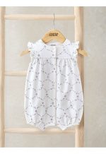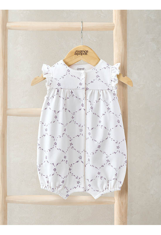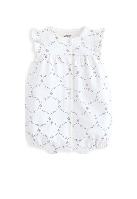 Adorable toddler romper featuring a contemporary trellis print, perfect for everyday wear.