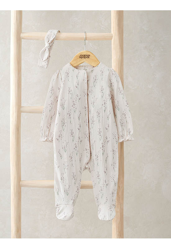A cute and comfortable lavender crinkle jersey all in one set, perfect for all-day wear.