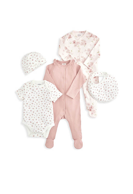 beautiful and practical 5-piece set with charming details, perfect for your little one.