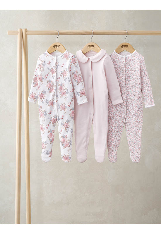 Girl Toddler Sleepsuit Set Floral 3 Pack