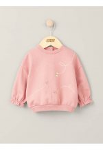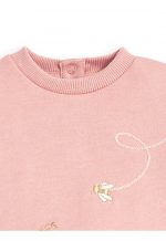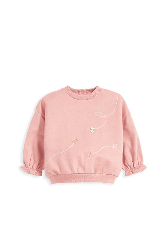 Girls’ long-sleeved loopback sweatshirt in pink. With sweet bee and ladybird embroidery detail on front. Popper opening at back for easy dressing/undressing. Elasticated cuffs for an ultra comfy fit.