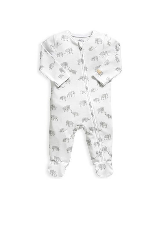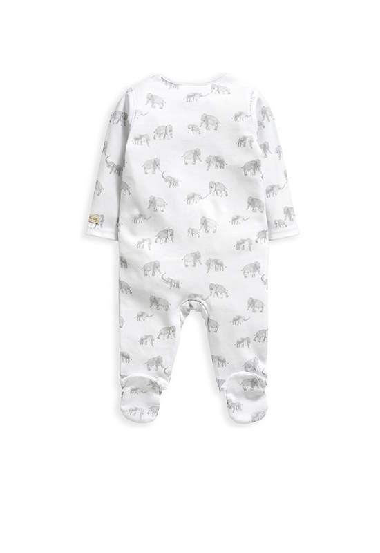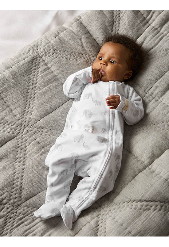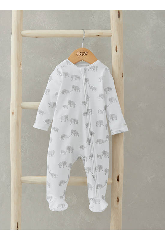 This elephant print all-in-one is a wardrobe essential for your little one. With an all-over print, it’s crafted from the softest jersey cotton and has a zip fastening on the front, so those changes will be super-easy for you.