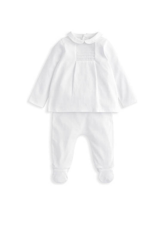 Cute and classic, this white 2-piece is the perfect addition to newborn wardrobes.