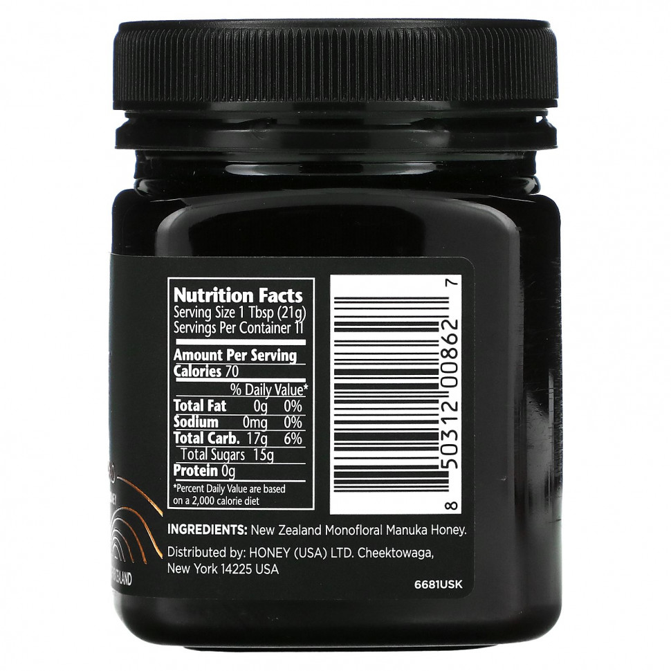 Компания Manuka Doctor специализируется на производстве высококачественного меда манука из Новой Зеландии. Этот продукт соответствует стандарту, установленному правительством Новой Зеландии для монофлорного меда манука. Уровень метилглиоксаля подтвержден независимыми лабораториями Новой Зеландии. Гарантированно содержит не менее 925+ MGO = 925 мг / кг метилглиоксаля.