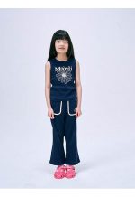 Kids Waffle Flare Pants Navy Cream