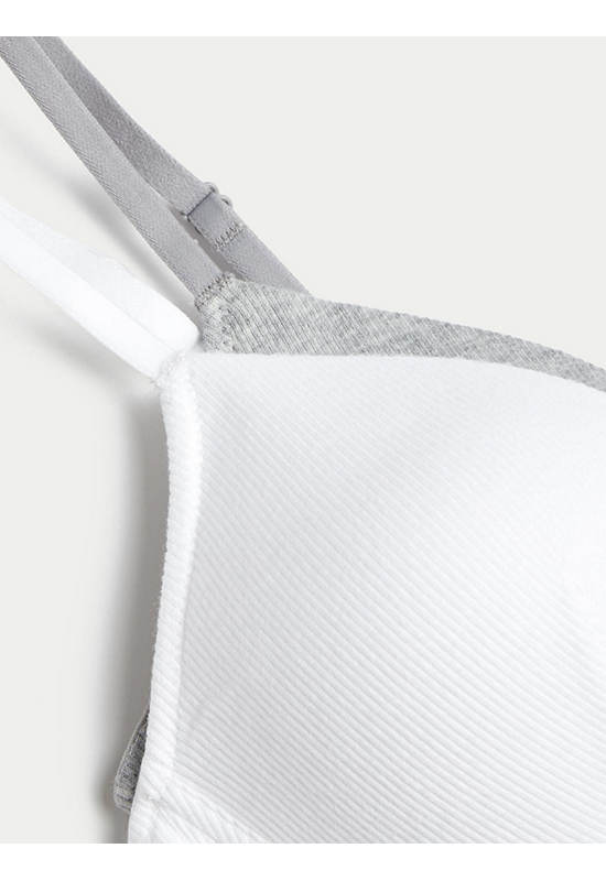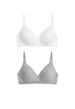 MARKS & SPENCER Made from super-soft cotton-rich material with a ribbed finish, these bras from our M&S Collection range have a sporty look. The perfect first bra, they’re specially designed with comfy, non-wired cups to support a growing shape. Light padding ensures a smooth look under clothes. Comes in a handy pack of two in different colours. M&S Collection Bras: simple and supportive bras specially designed for pre-teens.