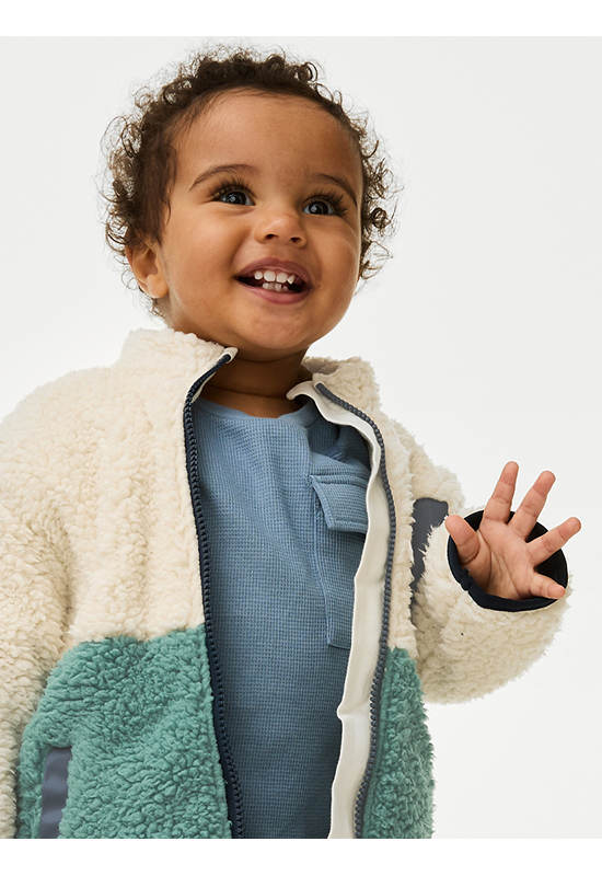 MARKS & SPENCER KIDS Kids will love the cosy feel of this borg jacket. It features a zip-through fastening and a zipped chest for their bits and bobs. The colour block design gives it a cool look.