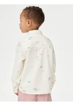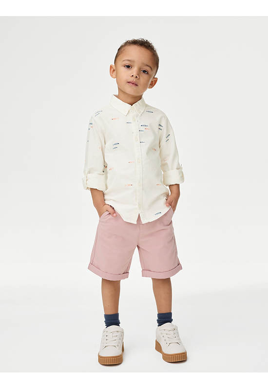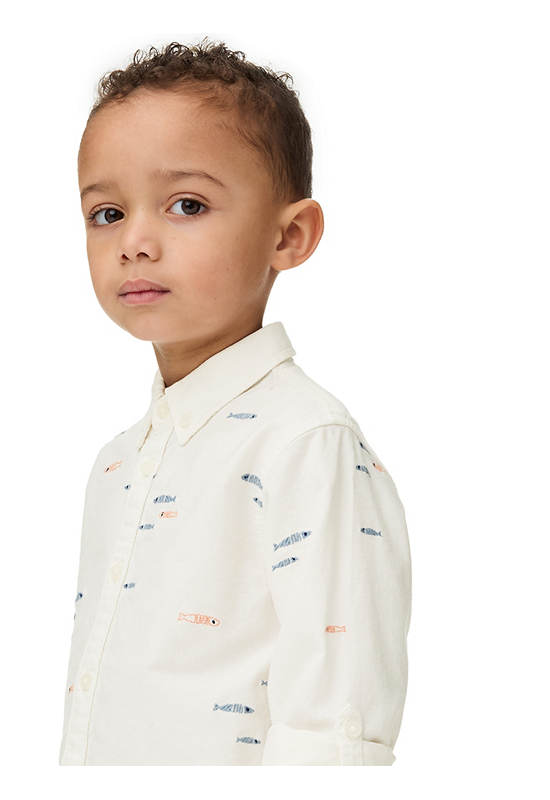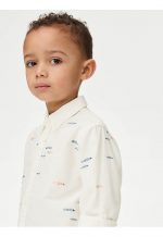 MARKS & SPENCER KIDS This pure cotton Oxford shirt goes with the flow thanks to an all-over embroidered fish design. It’s made in a comfy regular fit, with a smart button-down collar and roll-back sleeves. The adjustable cuffs feature elastic for extra comfort.