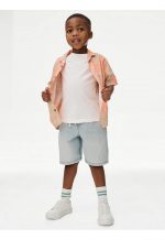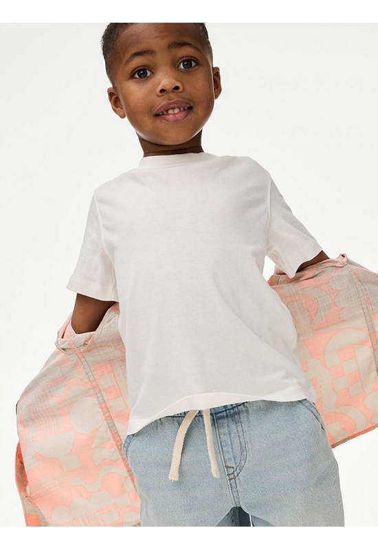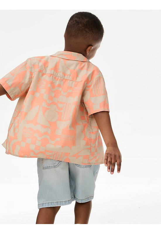 This pure cotton shirt and t-shirt set from MARKS&SPENCER is a cool choice for warmer days. Both pieces are made in an easy regular fit. The short-sleeved shirt features a bold abstract print, an open collar and a button through front. The plain t-shirt has a simple round neck and can be worn underneath or separately.