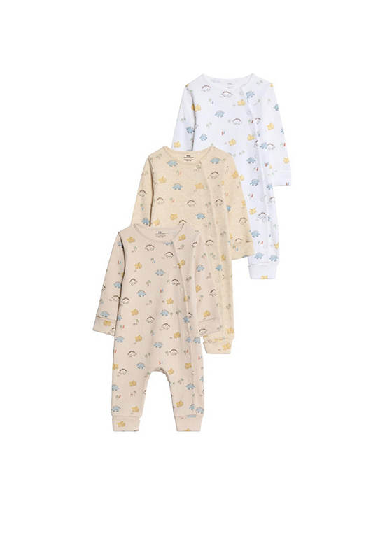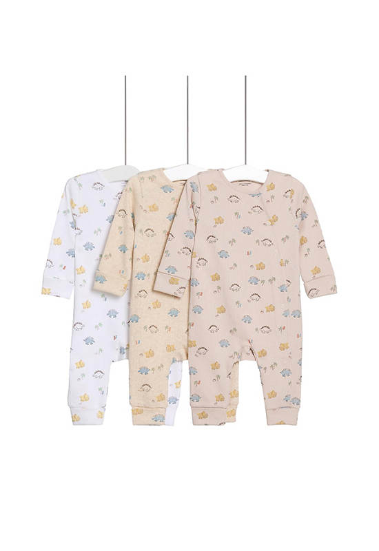 Stock up with this three-pack of pure cotton sleepsuits from MARKS&SPENCER. The long-sleeved designs feature full-length popper fastenings and integral mitts to protect from scratching up to age 6 months. Each one is decorated all over with a cheerful dinosaur print.