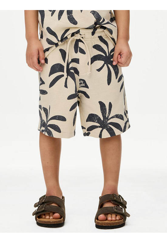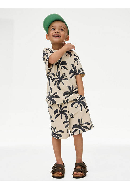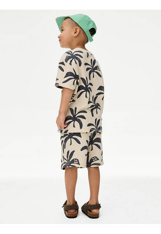 Get them ready for the summer holidays with this pure cotton outfit from MARKS&SPENCER. Comfy regular fit. Comprises shorts and a round-neck t-shirt, both featuring an all-over palm tree print and ‘vacay mood’ slogans. Shorts have a comfy adjustable drawstring waist.