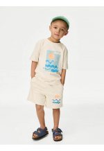 A cool wave graphic brings a chilled vibe to this pure cotton t-shirt from MARKS&SPENCER. Comfy regular fit, with breezy short sleeves and a casual round neckline. The design features a sunny sky and the slogan ‘The fun begins!’