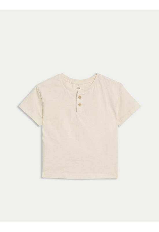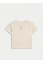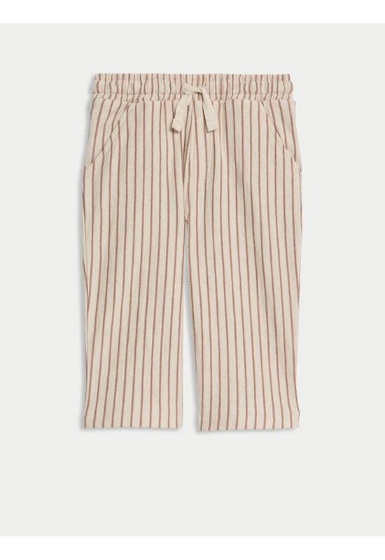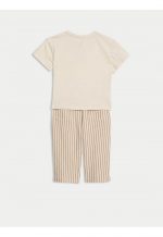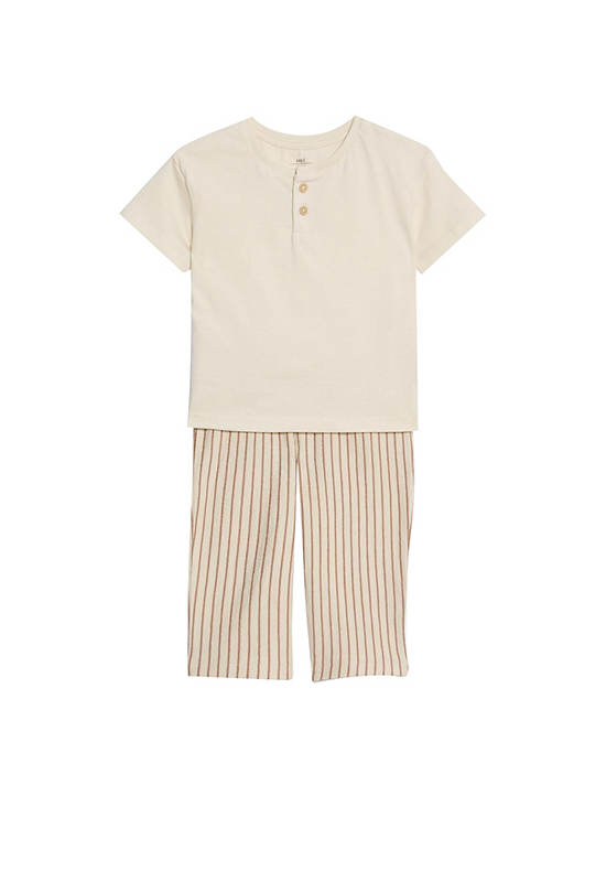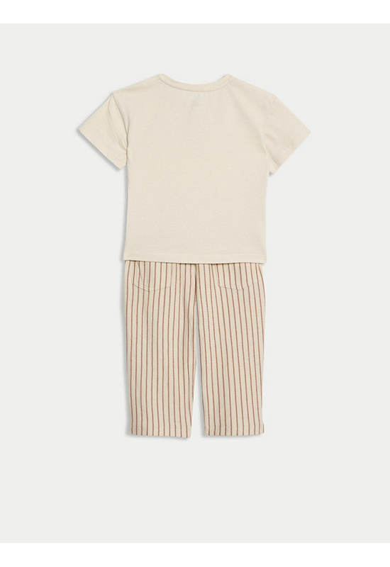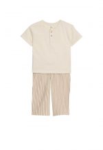 This pure cotton outfit from MARKS&SPENCER is perfect for playtime. The plain t-shirt has a round neckline and button fastenings on the front for easy dressing, while the striped trousers feature an elasticated waist for comfort. Side pockets complete the design.