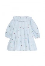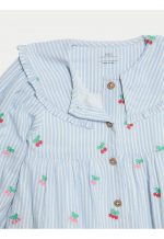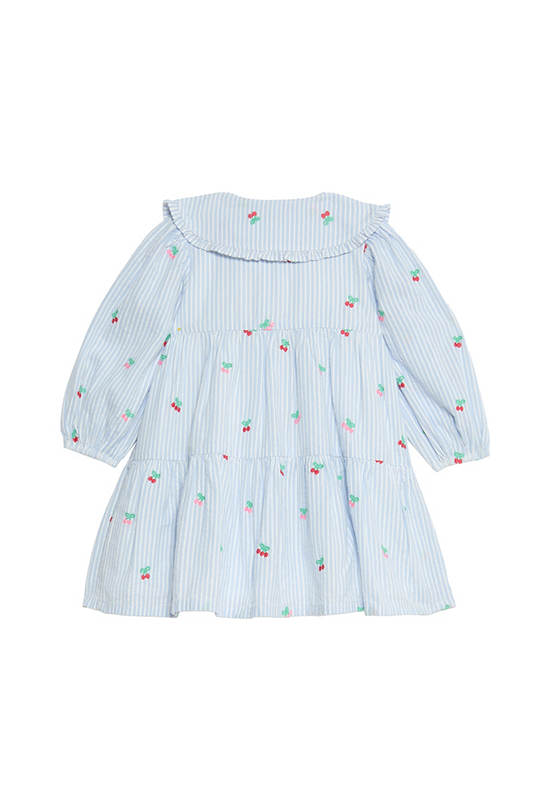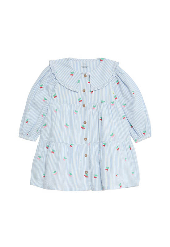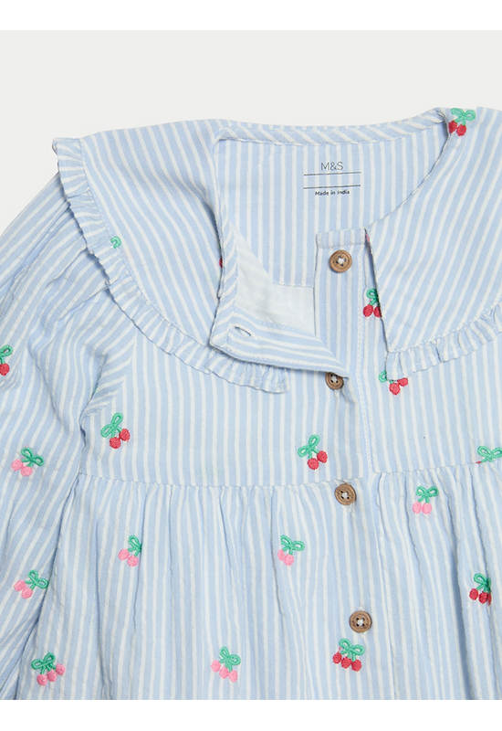 MARKS & SPENCER KIDS Embroidered all over with cute cherries, this striped dress is a sweet choice for your little one. It’s made from soft pure cotton, with a pretty frill-trimmed collar. Buttons fasten through the front of the tiered skirt, and the long sleeves gather into elastic cuffs.