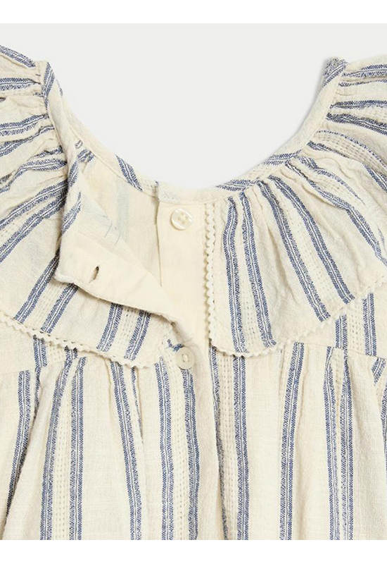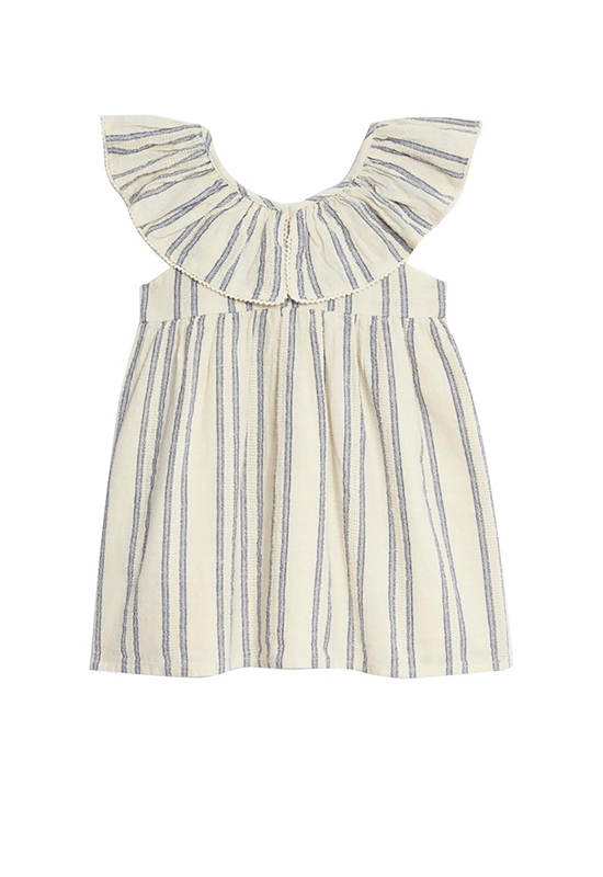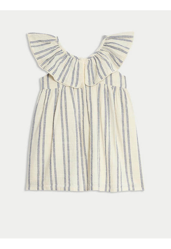 This pure cotton dress from MARKS&SPENCER is perfect for sunny weather and picnics in the park. It features a gently frilled collar with a button fastening and comes in a sleeveless style for active days. The fabric is decorated with a classic all-over woven stripe pattern.