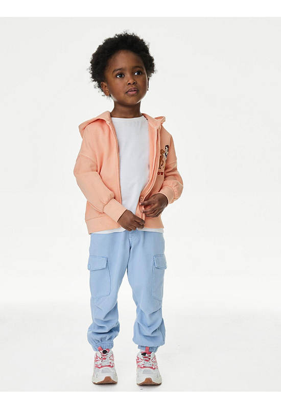 This cotton-rich hoodie from MARKS&SPENCER is perfect for little Disney fans. Comfy regular fit, with a handy zip-up front. The bright Snow White print on the front is complemented by a bold graphic on the back. A ribbed hem and cuffs add a neat finish.