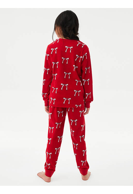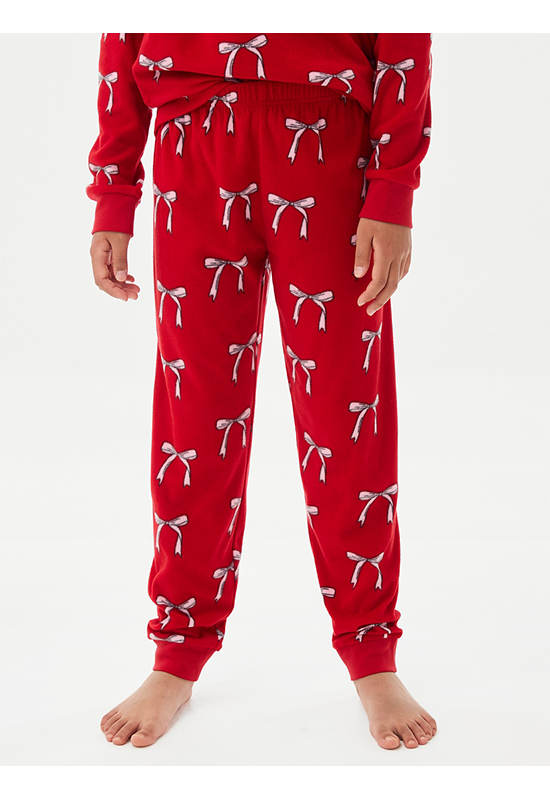 MARKS & SPENCER KIDS With their smart all-over bow print and fleecy fabric, kids will look forward to bedtime in these cosy pyjamas. Cut in a comfy regular fit with neat ribbed trims. Includes a long-sleeved top and full-length bottoms with a stretchy elasticated waist.