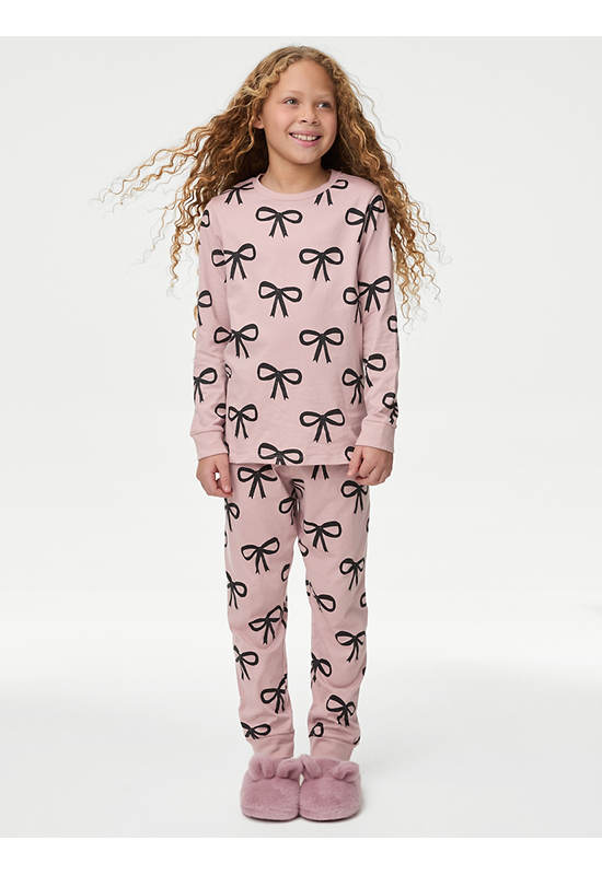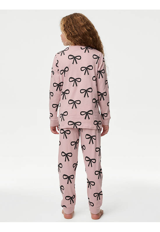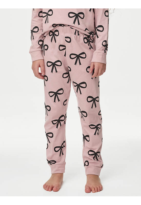 MARKS & SPENCER KIDS These pure cotton pyjamas are an adorable choice for bedtime. The set includes a long-sleeved top and a pair of full-length bottoms, both cut in a comfy regular fit. A sweet all-over bow print completes the design.