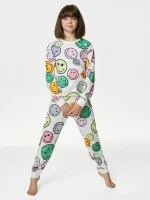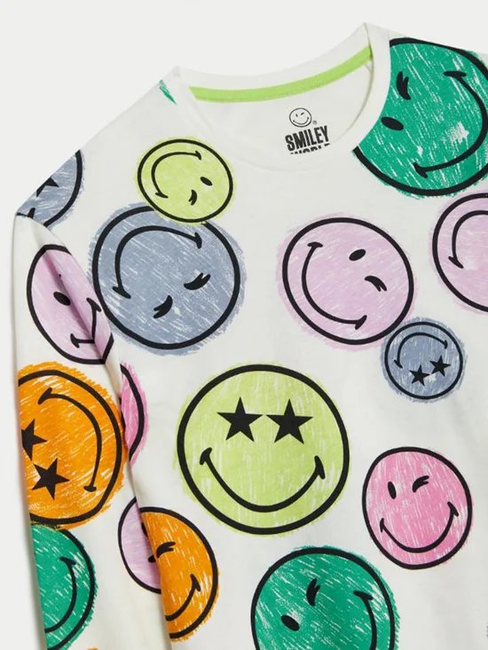 Kids can share the fun of SmileyWorld, even at bedtime, in these pure cotton pyjamas from MARKS & SPENCER. Regular fit, with long sleeves and ribbed trims. Can be worn every time your kids go to bed or wear it at home comfortably. It’s flexible and allows your kids to sleep comfortably.