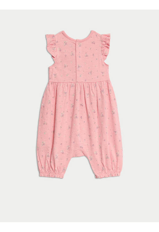 This pure cotton ditsy floral romper from MARKS&SPENCER is perfect for warmer weather. Frill detailing at the shoulders adds a pretty touch. Poppers on the legs and at the back make changing easier.