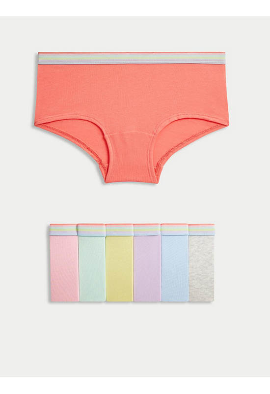 With their bright rainbow waistbands, these cotton-rich shorts from MARKS&SPENCER will make a cheerful addition to their underwear collection. With added stretch for comfort. Handy pack of seven pairs.