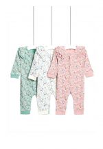 With their soft florals, these pure cotton sleepsuits by MARKS&SPENCER bring pretty prints to their collection. Easy snap fastenings, with a copper popper to make dressing simpler. Frills at the shoulders add fluttery detail. Footless design for a cool night’s sleep.