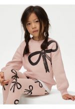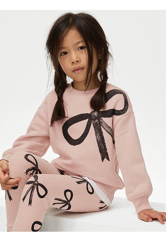 MARKS & SPENCER KIDS This cotton-rich sweatshirt is a pretty piece to add to their wardrobe. Easy regular fit, with a ribbed round neckline, cuffs and hem. The front features a charming bow print.