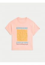 This soft and breathable cotton-rich t-shirt from MARKS&SPENCER is the perfect choice for bright kids! It’s made in a comfy regular fit, and the fabric has added stretch for easy movement. It features a shell imprint graphic and the slogan ‘Sunshine State of Mind’.