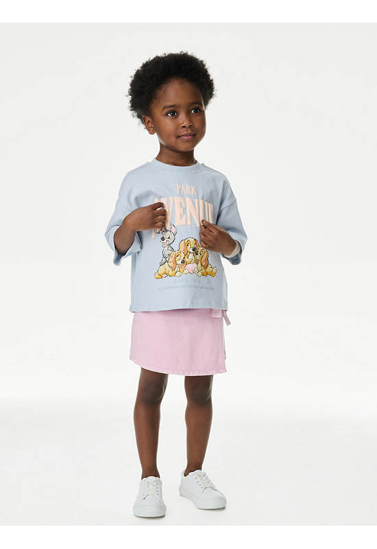 This cotton-rich t-shirt from MARKS&SPENCER features the cutest canine crew from the classic Disney film. Regular fit, with a round neckline and casual dropped shoulders. The front showcases an adorable character design, bringing the magic of Lady and the Tramp to life.