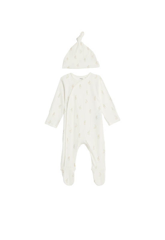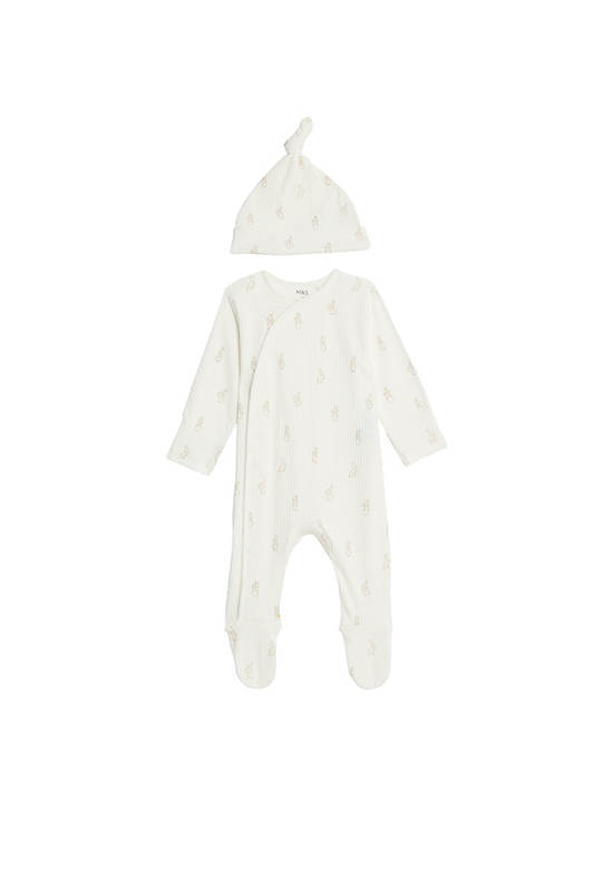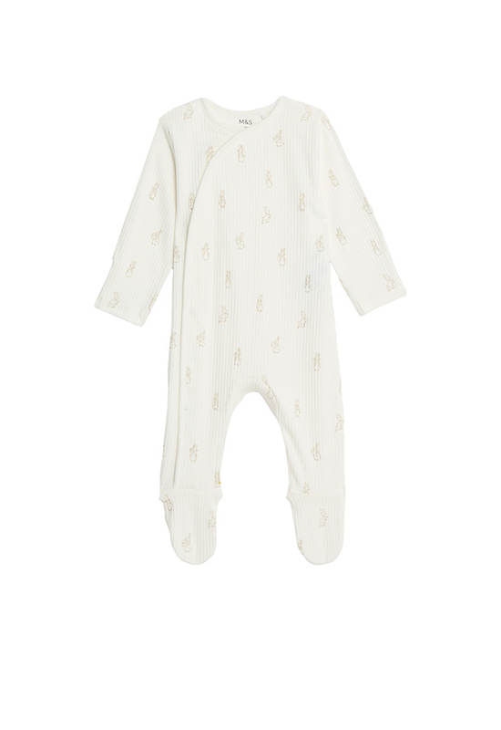 MARKS & SPENCER KIDS This cotton-rich Peter Rabbit sleepsuit and hat set has a touch of stretch in the fabric for easy movement. The sleepsuit has a cosy long-sleeved design with popper fastenings, plus Babysafe toes for comfort. Integral mitts on sizes up to 3 to 6 Months protect from scratching, while anti-slip technology on sizes from 9 to 12 Months helps prevent falls. A snug hat completes the set.
