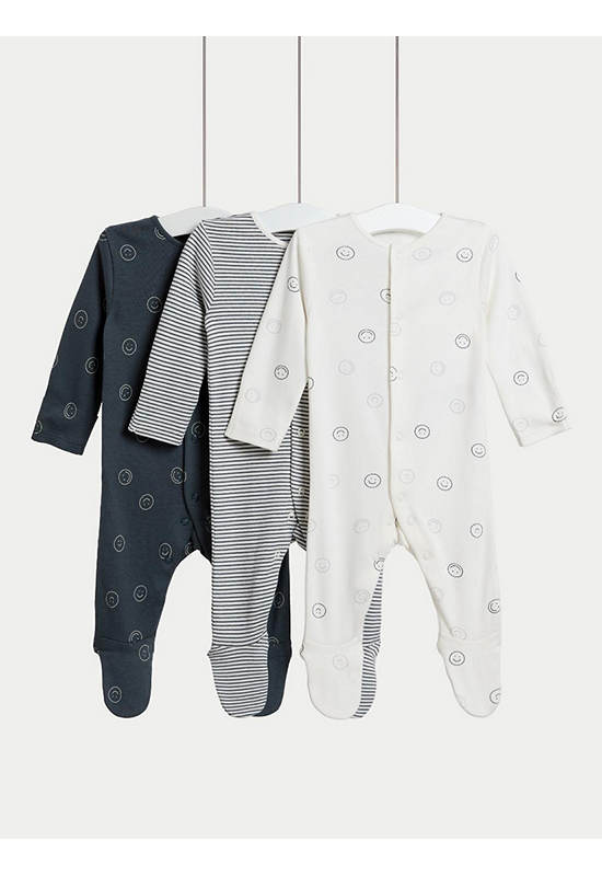 Bring some cheer to bedtime with these happy face print sleepsuits from MARKS&SPENCER. They feature integral mitts designed to protect from scratching up to 6 months, and Babysafe toes specially constructed for comfort and safety. Sizes from 9 to 12 months have anti-slip feet.