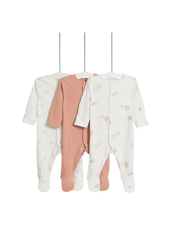 Unisex Toddler Sleepsuits Pure Cotton Balloon & Cloud 3 Pk