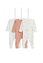 MARKS & SPENCER KIDS These pure cotton popper sleepsuits are perfect for your little one. Babysafe toes offer comfort and safety. For sizes up to 3 to 6 Months, integral mitts help prevent scratching. Anti-slip technology on sizes from 9 to 12 Months. Plain, balloon and cloud print styles.