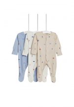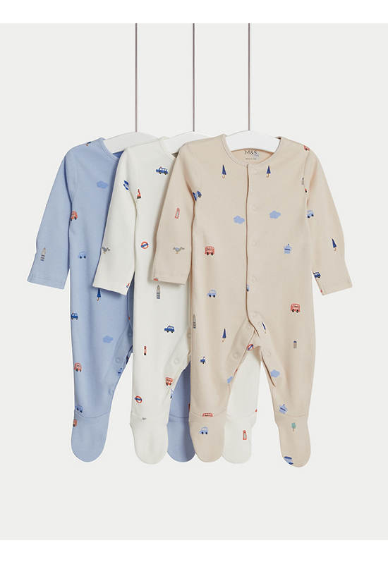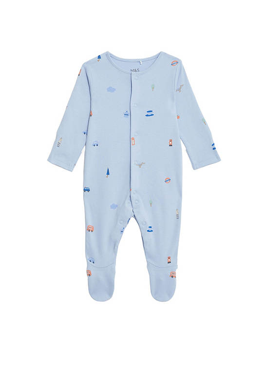 MARKS & SPENCER KIDS This three-pack of pure cotton sleepsuits has your little one’s comfort covered. Popper fastenings for easy changing, plus a copper popper to help you line them up. Babysafe toes are available on all sizes and anti-slip technology from ages 9 to 12 Months keep them safe. Integral mitts on sizes up to 6 Months prevent scratching. The sleepsuits feature London-themed motifs, such as red buses and tube signs.