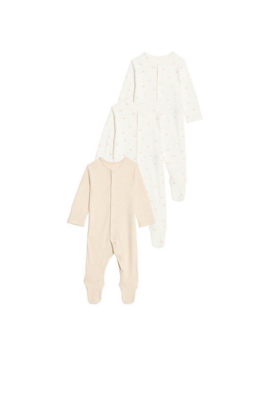 This three-pack of pure cotton sleepsuits from MARKS&SPENCER is a must-have for your little one. Popper fastenings for easy changing. Sizes up to 3 to 6 months have integral mitts to prevent scratching, while sizes from 9 to 12 months have anti-slip technology. Babysafe toes keep them comfy. Mix of plain and turtle-themed designs.