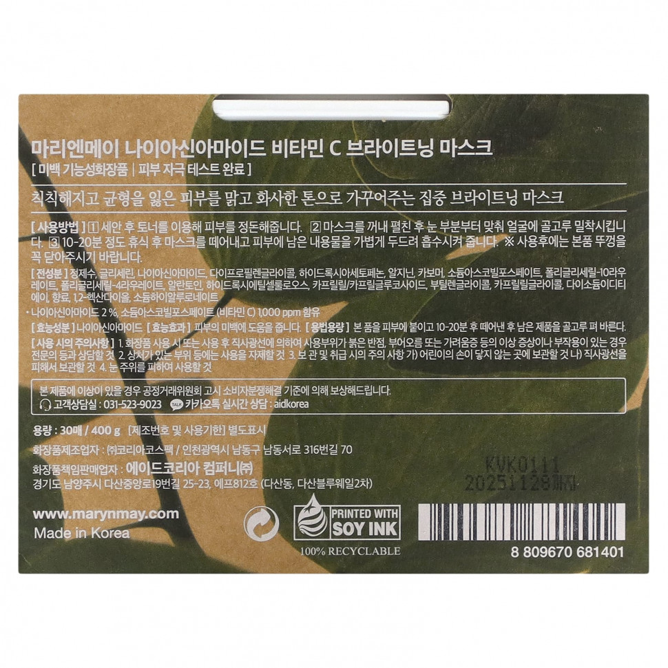 Осветляющая маска Mary & May с ниацинамидом + витаминами, содержащая ниацинамид + витамин С, который осветляет тусклую и потемневшую кожу, ежедневная осветляющая маска для ухода!