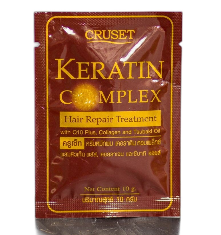 Cruset Keratin Complex Hair Repair Treatment Кератиновый комплекс для восстанавливающего ухода за волосами — с коэнзимами Q10-плюс, коллагеном и маслом японской камелии (цубаки). Для возрождения всех типов поврежденных волос. Стимулирует корни волос, придает плотность и улучшает структуру. Приносит ощущение шелковой гладкости с первого прикосновения и восстанавливает сухие, поврежденные волосы, возвращая им истинное здоровье. Интенсивный уход за волосами при помощи кератина, коллагена и коэнзимов Q10-плюс; Обеспечивает экспресс — восстановление волос и сохраняет цвет. Легендарное масло японской камелии (цубаки) является традиционным косметическим маслом, которое ухаживает за сухими, секущимися кончиками волос, возвращает волосам молодость и естественную красоту. Используется в процедуре "Тайский бриз"