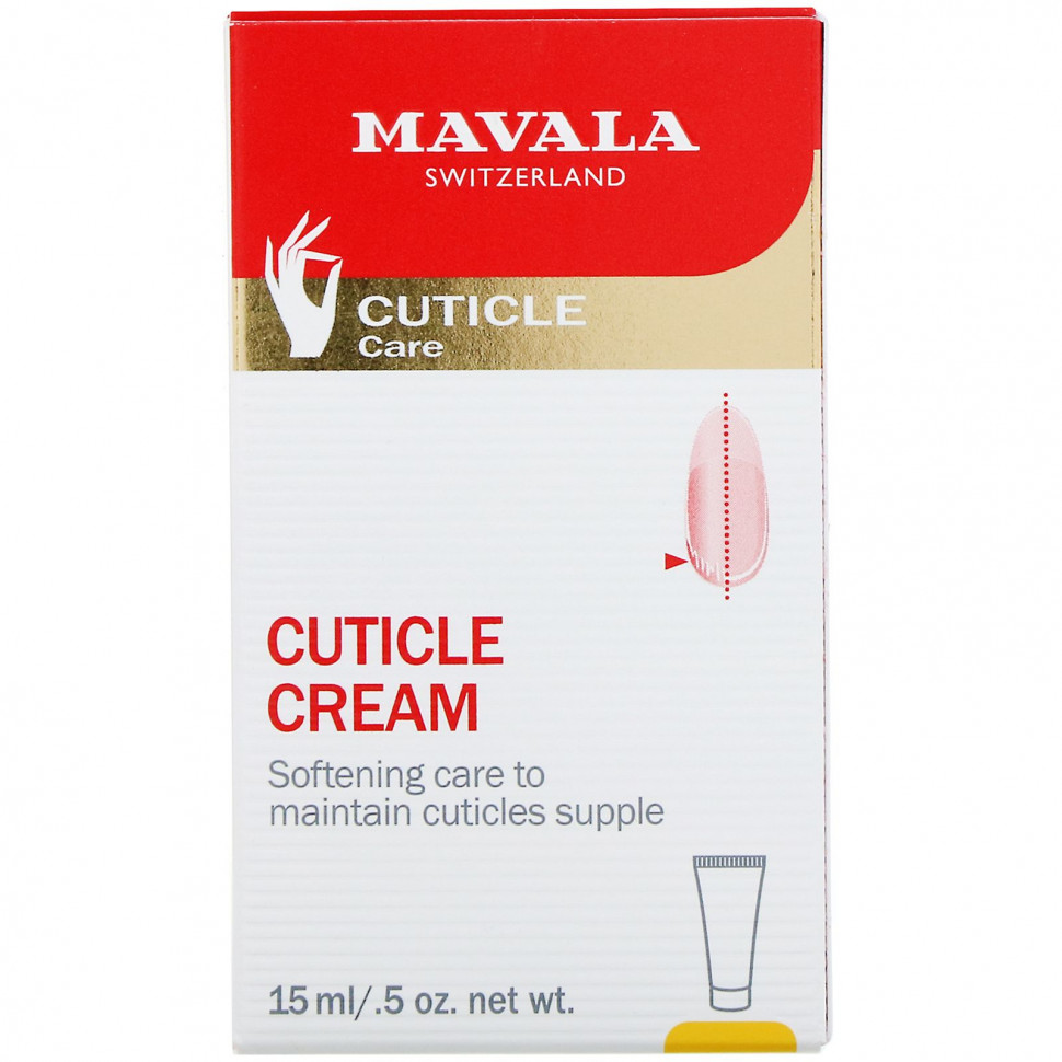Крем для кутикулы Mavala при ежедневном применении смягчает кожу вокруг ногтей, благодаря чему ее становится легко отодвигать. Обеспечивает ровный контур вокруг ногтя.