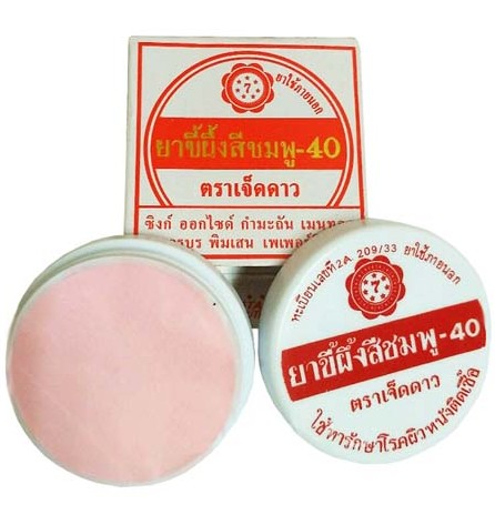 Крем, снимающий воспаления на коже, против зуда и укусов насекомых, против развития отека на коже, для устранения прыщей и сыпи различного характера тайской «народной» марки Семь звезд, особенно популярной у тайцев, живущих в деревнях и поселках.