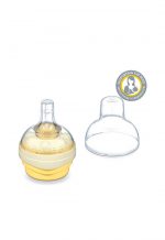 Calma™ Feeding System by MEDELA has a patented air-vent system that allows milk to flow only when baby creates suction. It is suitable for all ages, eliminates the need for flow rate adjustments, and fits all Medela bottles.
