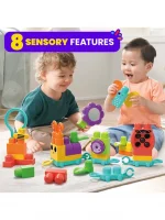 Mega Bloks Move ‘N Groove Caterpillar Toys to enhance thinking skills from the MEGA BLOKS brand, Little Builders will move and groove alongside this adorable caterpillar train. Toddlers can build a caterpillar train with motion and chain blocks, and a pull string in the front to get it rolling. Then, they can add a ladybug with a pop block, a snail with a turn-and-click feature, and a butterfly with textured wings on the caterpillar is back to come along for the ride. Toddlers can also discover a mirrored flower, textured antennas, and a bee bead block. Crafted from high-quality, child-safe materials, you can trust that these toys are built to last and are free from harmful substances. Vibrant and colorful designs engage your child’s senses, promoting cognitive development and sensory exploration.