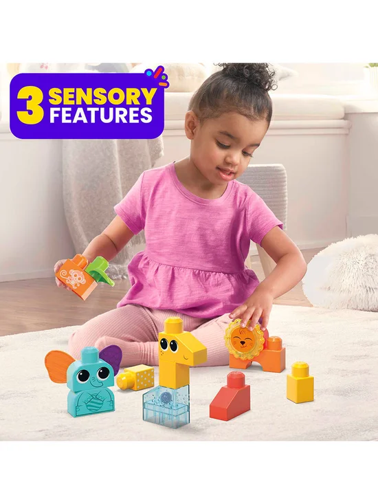 Mega Bloks Rock ‘N Rattle Safari Toys to enhance thinking skills from the MEGA BLOKS brand, Little Builders will rock, rattle, and spin with joy when they build their favorite safari animals. With the help of 3 sensory features, toddlers can build, play, and explore their senses. They will discover the wonders of the safari when they touch and feel the elephant is textured ears, rattle the giraffe to hear the tinkle bells, and turn the lion is head to spin the beads. Crafted from high-quality, child-safe materials, you can trust that these toys are built to last and are free from harmful substances. Vibrant and colorful designs engage your child’s senses, promoting cognitive development and sensory exploration.