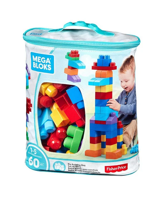 First Builders Big Building Bag 60 Pcs. from MEGA BLOKS brand name. Now your little one can build anything they imagine when they use the blocks and special shapes to create tall towers, crazy castles, funny animals, or whatever else they dream up. Perfect for little hands, these big blocks fit together and come apart easily, helping your child to develop fine motor skills and creativity over hours of open-ended play. When playtime’s over, cleanup is easy with the handy storage bag. Ideal for ages 1 to 5