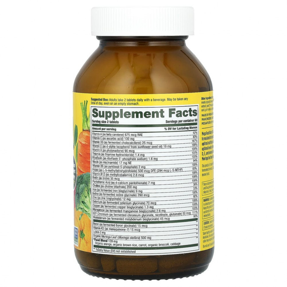 Этот продукт MegaFood изготовлен из натуральных продуктов, полезных пищевых дрожжей и добавленных питательных веществ.