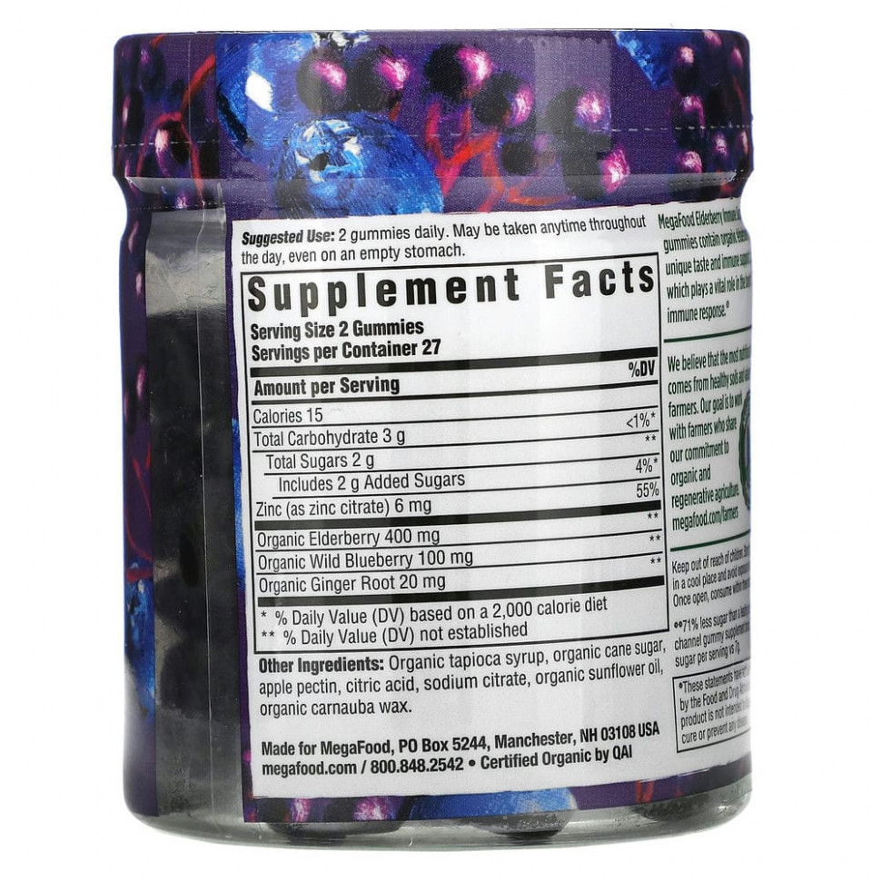 Жевательные таблетки MegaFood для поддержки иммунитета и бузины содержат органическую бузину для уникального вкуса и поддержки иммунитета, а также цинк, который играет жизненно важную роль в иммунной реакции организма.