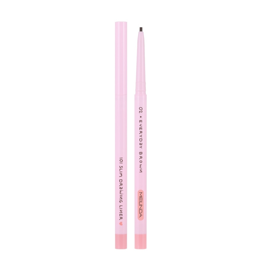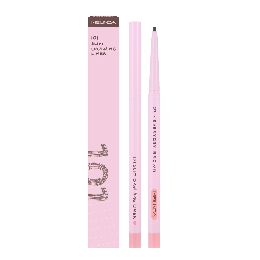 MEILINDA 101 Slim Drawing Liner 1.5 mm slim eyeliner pencil, available in 2 colors to suit your makeup needs, easy to use, providing sharp, thin liner lines with a 1.5 mm pencil tip, making it easy to draw sharp liner lines. The pencil is smooth, easy to write, and waterproof all day long, perfect for beginners who are just learning to draw eyeliner. It makes drawing eyeliner and drawing the outer corner of the eye easy. The pencil is smooth, easy to write, and does not irritate the eyes. It is essential for beginners to create perfect eye makeup. The eyeliner pencil has a soft, smooth texture, clear color, and easy to write, giving a beautiful, natural eye makeup. Since the pencil lead is thin, the pencil should be twisted out only a little and appropriately for each use. When finished using, close the cap tightly. Store at room temperature.