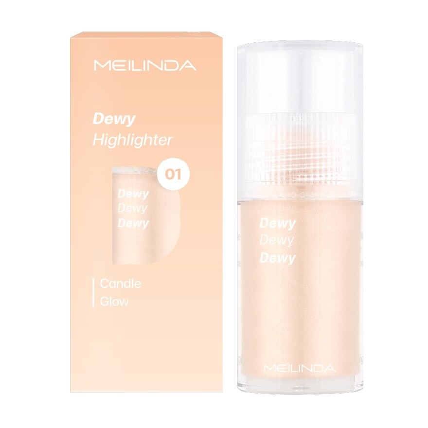 MEILINDA Dewy Highlighter 6ml01 Candle Glow liquid highlighter, juicy texture. Give the skin a distinctive glow Glowing with special glow oil and fine pearl powder. The texture of the product is easy to spread, soft and smooth, giving a dewy finish to the skin. Smooth and blend with the skin naturally as if it were the same layer of skin. Can be used as a spot highlighter to add dimension to the face. Or use it mixed with base makeup to add glow to the skin, easy to blend, durable, beautiful all day long Waterproof to make your eyes sparkle all day long, packed with concentrated pearl powder. Add beauty to the eyes to sparkle and sparkle throughout the day. and add a distinctive look to the eyes Plus, it's a liquid texture that's easy to spread. Not greasy, suitable for all genders, all ages, easy to carry size. Storage should be tightly closed.